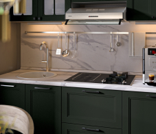 Высокое качество материалов: Используем только экологически чистые и долговечные материалы, что обеспечивает надежность и долговечность вашей кухни. Фасады устойчивы к механическим повреждениям и легко очищаются от загрязнений.