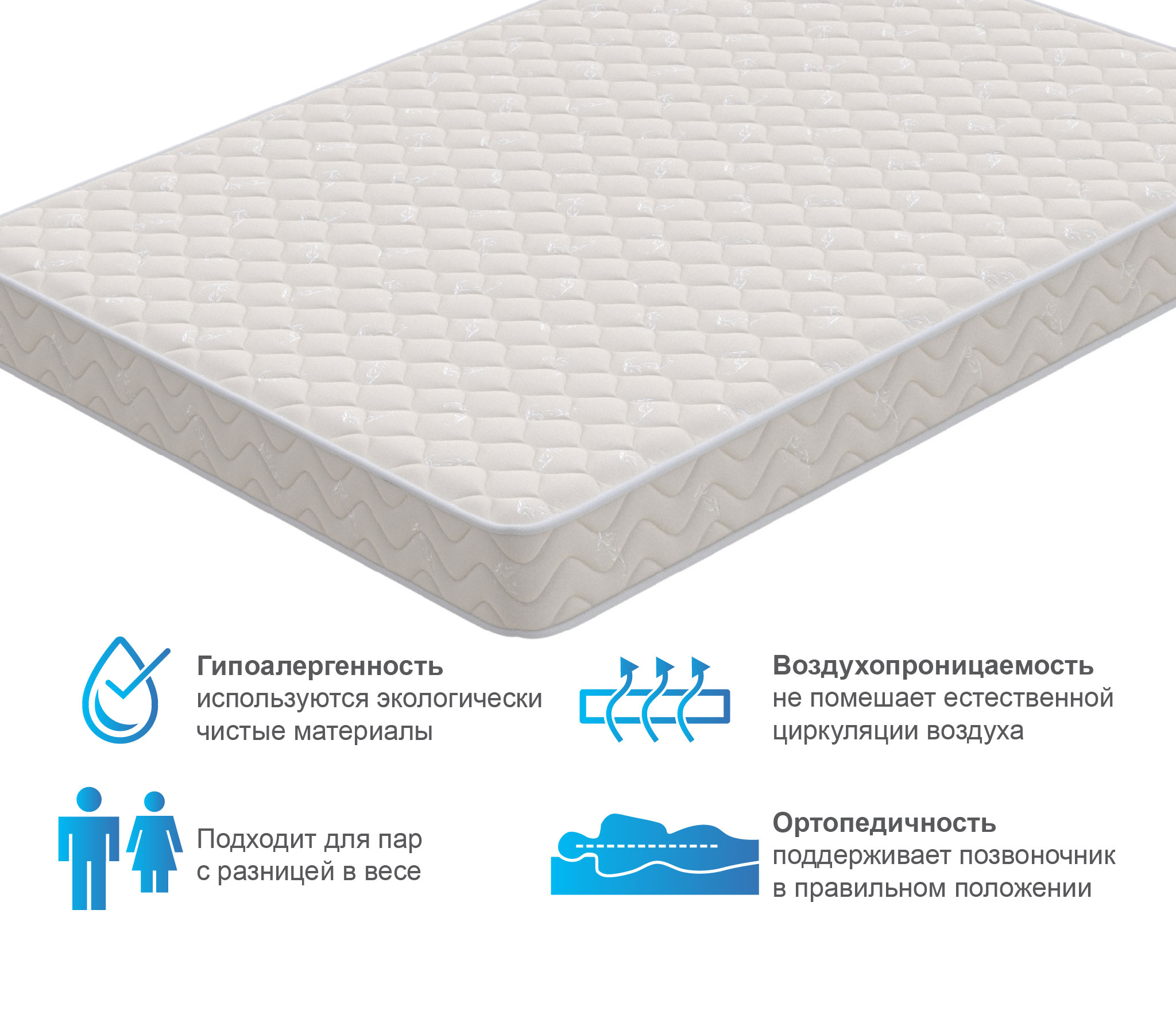 Базовая модель для комфортного отдыха. Сочетание комфортных слоев из мягкого ортофом, жесткого кокоса с би-компонентами с независимым пружинным блоком наделяют матрас универсальной средней жесткостью. Отлично подойдет для обустройства спального места на даче, в съемной квартире или в качестве временного решения. Матрас не требует переворачивания.